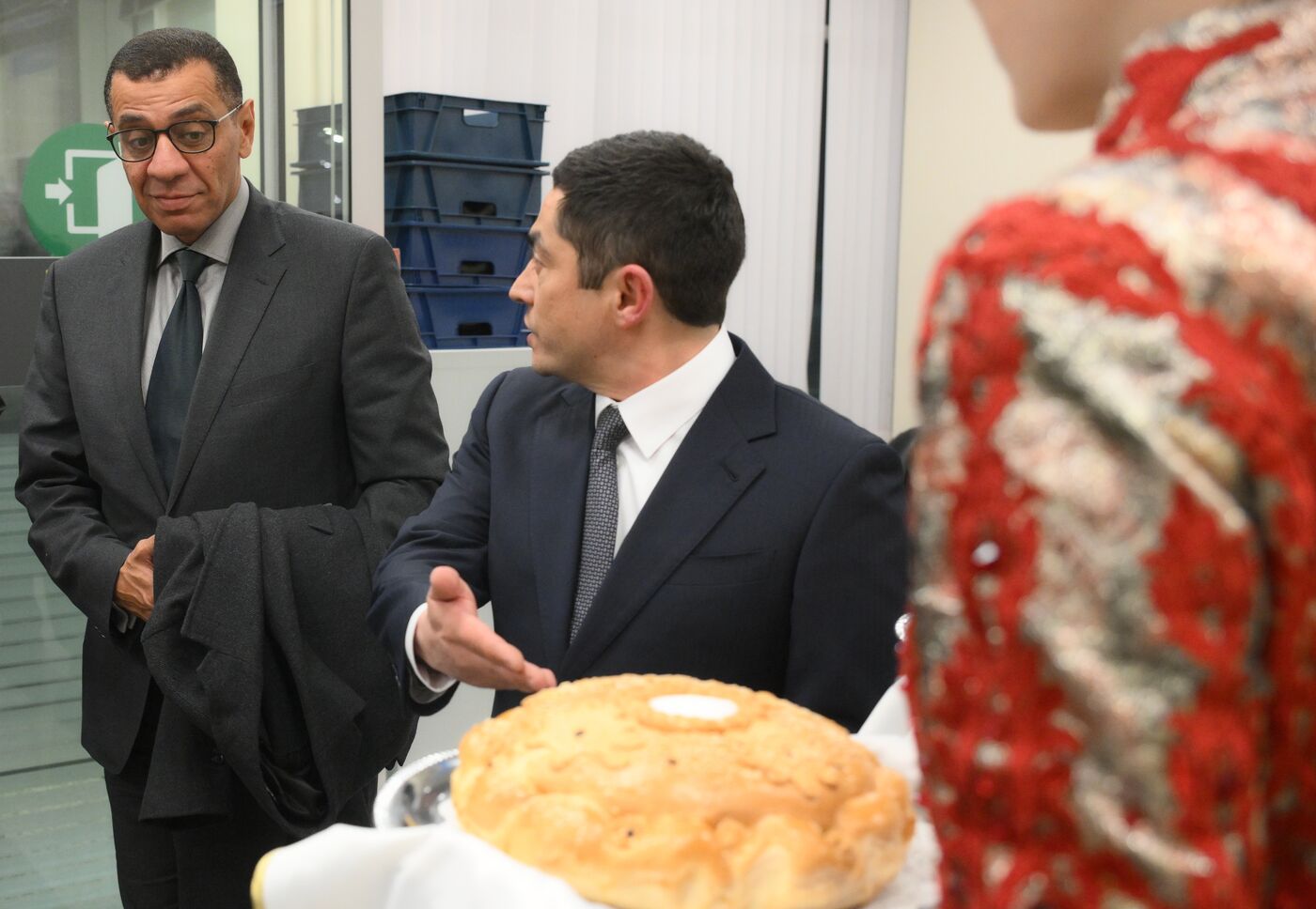 The ceremony to greet participants in the Russia – Islamic World: KAZANFORUM 2024 international economic forum at Kazan's airport. Left: Mohamed Mahmoud Khalaf, Chairman for Cassation Affairs, Director, Department of International Cooperation and Human Rights, General Prosecutor Office of the Arab Republic of Egypt. Photos can be used on terms specified in the mediabank's Forum section.